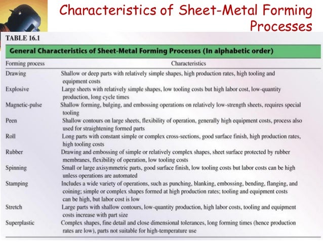 Sheet metal forming processes table 7 1 general characteristics of sheet metal forming processes. Often several rolls may be employed in series to continuously bend stock. Sheet metal forming processes this is a commonly used manufacturing process that helps in manufacturing the parts for tons of known and unknown purposes. The press is usually not yet known so that its characteristics are rather a factor of noise than a useful information.